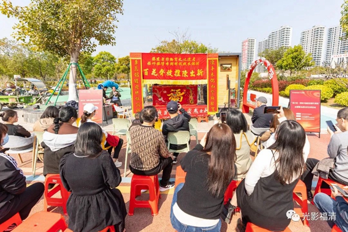 隨后,福清市攝影家協會文藝志愿者通過《光影璀璨耀玉融砥礪奮進新征程》主題攝影展的圖片,向大家宣講了黨的十八大以來建設取得的輝煌成就和玉融大地的巨大變化。福清市融媒體中心志愿者的方言快板宣講《黨的二十大報告暖人心》節奏明快、瑯瑯上口,文化志愿者以古戲新唱的形式表演了非遺文化詞明線戲《歌頌二十大》。