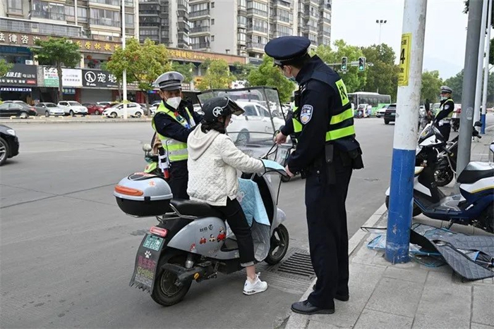 民警查處非機動車非法加裝擋風板,潘慧晶 攝