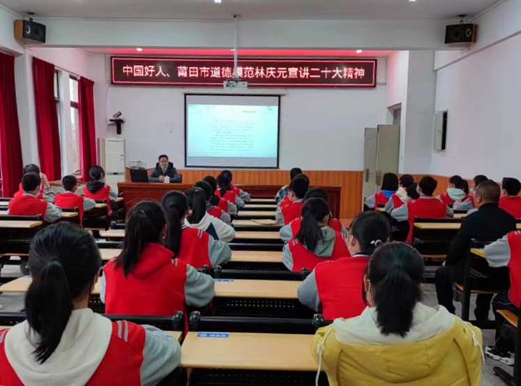 文明風(fēng)3月29日訊 為厚植廣大青少年學(xué)生的愛(ài)國(guó)主義情懷,進(jìn)一步加強(qiáng)理想信念教育,引導(dǎo)廣大師生深刻領(lǐng)悟黨的二十大精神,仙游縣充分發(fā)揮道德模范的示范引領(lǐng)教育作用,組織道德模范進(jìn)校園開(kāi)展黨的二十大精神宣講主題文明實(shí)踐活動(dòng)。3月28日,仙游縣委文明辦聯(lián)合縣教育局,邀請(qǐng)中國(guó)好人、莆田市道德模范、法律專(zhuān)家林慶元深入仙游縣永鴻中學(xué),為該校師生宣講黨的二十大精神。