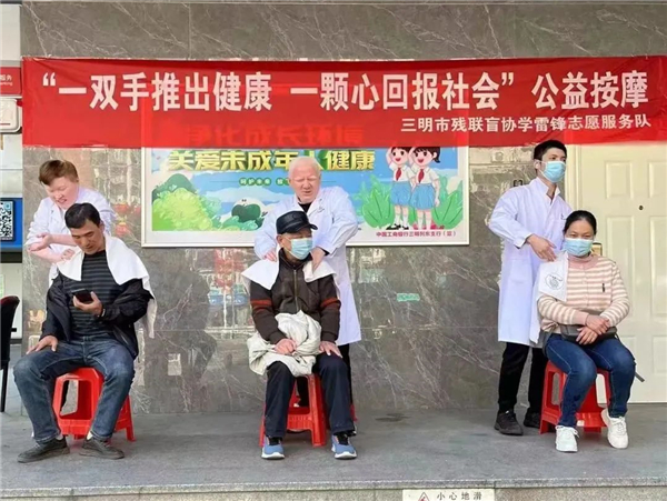萬達廣場、三明廣場……陽春三月,市殘聯盲協學雷鋒志愿服務隊的志愿者們,以一場場公益按摩志愿服務,踐行雷鋒精神,弘揚時代新風。