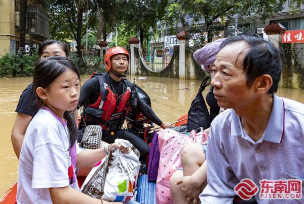 洪澇災害中,葉志誠轉移群眾。三明市消防救援支隊供圖