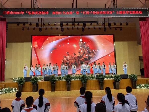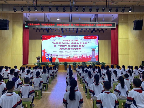 4月4日,三明市委文明辦、市教育局、市退役軍人事務局、市關工委在三元區第二實驗學校聯合舉辦2023年“弘揚英烈精神 賡續紅色血脈”暨“百園千校清明祭英烈”主題教育實踐活動,深情緬懷英烈、弘揚愛國精神,進一步加強和引導三明市未成年人革命傳統教育。