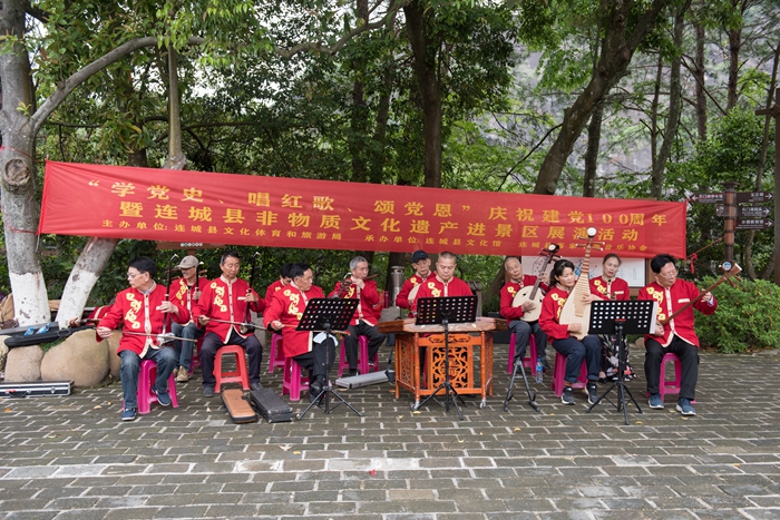 為推動(dòng)非遺文化傳承和理論宣講,連城以非遺文化為載體、黨的理論宣講為內(nèi)容、非遺文化志愿服務(wù)隊(duì)伍為主力軍,結(jié)合黨的創(chuàng)新理論及黨的二十大精神,創(chuàng)作了一批批群眾喜聞樂(lè)見(jiàn)的新作品、新形式,讓更多群眾在欣賞非遺文化同時(shí)推動(dòng)黨的創(chuàng)新理論落地生根。