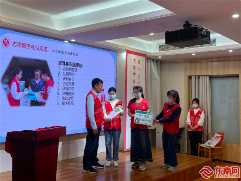 “大叔,您好!我們是岑西社區志愿者,我們想邀請您參與我們的節水知識科普問答……”培訓課堂的小舞臺上,集美大學青年志愿者正在演繹邀請居民參與問答的正確“打開方式”。