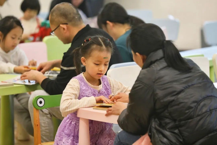在圖書館二樓大廳,市民正有序地在服務臺前辦理借閱證,閱覽室門口的借閱電子屏,借還方便,深受家長、孩子的喜愛。親子閱覽室內,小朋友們在選好繪本后,在家長的陪伴下暢游在故事的海洋中。