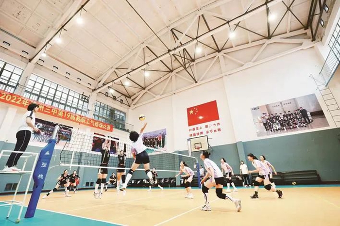 漳州三中排球隊(duì)訓(xùn)練中。李林 攝