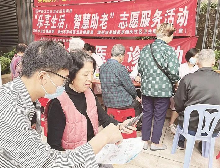 4月22日,漳州市衛(wèi)健委聯(lián)合薌城區(qū)衛(wèi)健局、東鋪頭社區(qū)衛(wèi)生服務(wù)中心走進(jìn)漳州萬(wàn)科城上城苑小區(qū),開(kāi)展“樂(lè)享生活 智慧助老”志愿服務(wù)活動(dòng)。