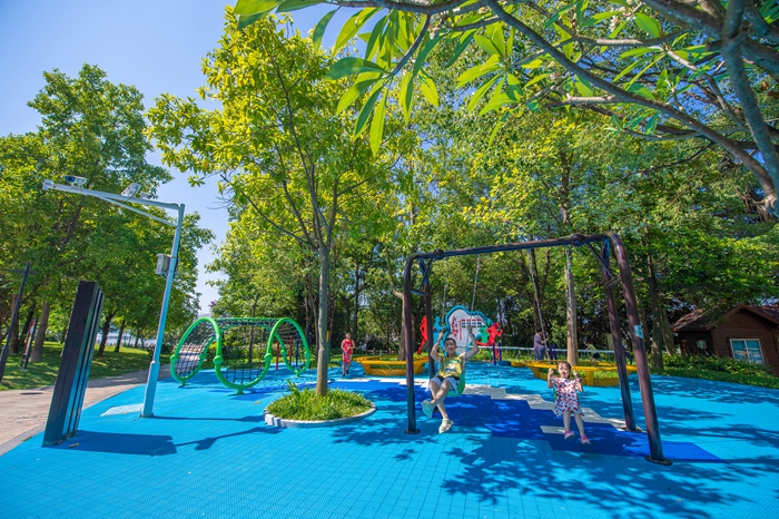小朋友在北江濱路口袋公園玩耍 游斐淵 攝