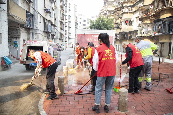 漳州市環衛中心組織黨員干部在民主里社區開展環境衛生整治志愿服務活動