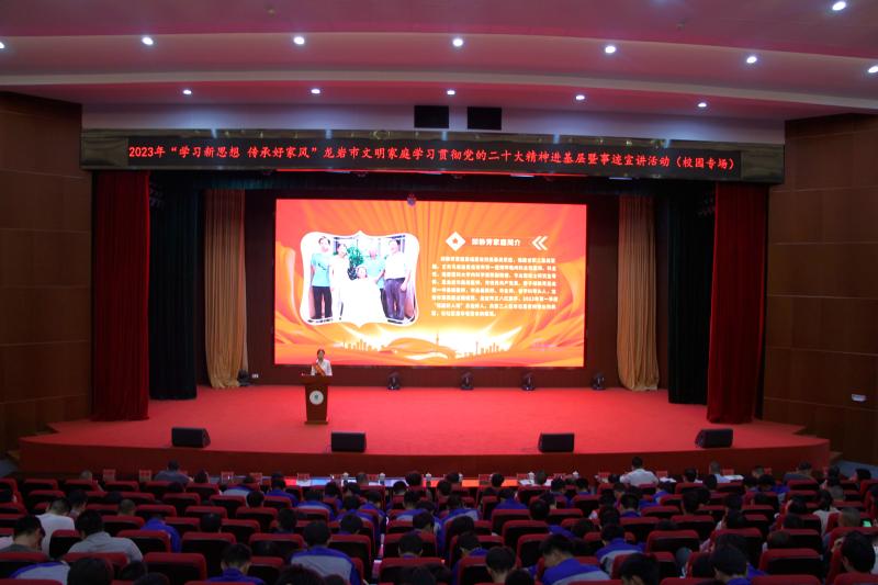 近日,由龍巖市委文明辦、龍巖市婦聯指導的龍巖市2023年“學習新思想 傳承好家風”文明家庭學習貫徹黨的二十大精神進基層暨事跡宣講活動在龍巖技師學院進行首場巡講。