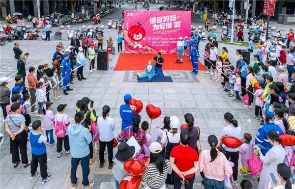 “媽媽辛苦了!母親節(jié)快樂”“民法典和我們的工作、生活、婚姻、家庭都息息相關(guān)”……5月14日在上杭縣臨江鎮(zhèn)瓦子街廣場舉辦“恒愛媽媽為愛接‘勵(lì)’”親子健步走活動(dòng),上杭縣“蒲公英”普法志愿者用法律守護(hù)“媽媽”們。