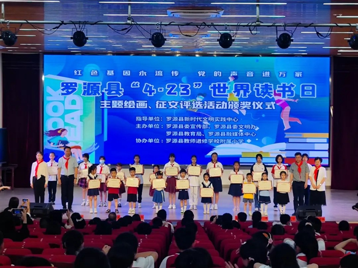 “4·23”世界讀書日主題繪畫、征文評選中獲獎的同學們頒獎現場。羅源縣委文明辦 供圖