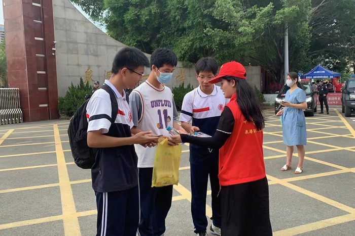 在考試期間,泉港家園義工協會、區助老服務志愿者協會分別在泉港一中、二中(新宅校區)考點門口設立高考志愿服務驛站,為考生提供2B鉛筆、橡皮等考試用品,礦泉水、紙巾等便民物品及藿香正氣水、風油精等防暑降溫藥品。