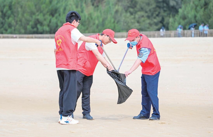 在壇南灣田美澳廣場,“和美海島”創(chuàng)建成效展在此舉辦,以宣傳畫報形式,圍繞“生態(tài)美、生活美、生產(chǎn)美”主題宣傳海壇島“和美海島”創(chuàng)建成效,并向市民、游客分發(fā)相關(guān)法律知識宣傳手冊。活動結(jié)束后,志愿者沿著田美澳沙灘開展凈灘活動。