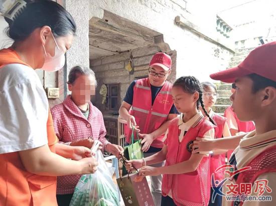 廈門翔安旅游發展有限公司聯合莊家寶蔬菜專業合作社還為社區老人準備了新鮮的蔬菜、豆腐、茶杯套裝,積極為學生們樹立“為仁”“助人”的優秀榜樣。學生們有的拎著一大包新鮮蔬菜,有的拎著新鮮的豆腐,有的提著套杯走進面前埔村一戶戶貧困老人家中,向老奶奶、老爺爺問好,祝他們身體健康。