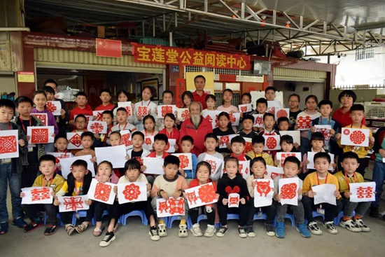 “頭放正,肩齊平,挺直后背,一撇一捺都要用心寫。”近日,在龍門鎮觀山村的寶蓮堂公益閱讀中心,龍門中學老師馬育生為孩子們帶來了一節書法課,孩子們跟著一筆一劃學習書法,十分投入。不久前,廈門剪紙非遺傳承人洪志標也來到公益閱讀中心,用一把剪刀和一張紅紙,教孩子們從對稱的圖案學起,剪出圓圓的窗花、大紅的囍字。“咱厝人,冬至時,米絞粞搓紅丸……”以快板藝術風靡安溪的民間藝人黃桂生也來到公益閱讀中心,教孩子們唱他創作的新童謠《冬至搓紅丸》,孩子們一邊拍著節拍,一邊跟著念,其樂融融。