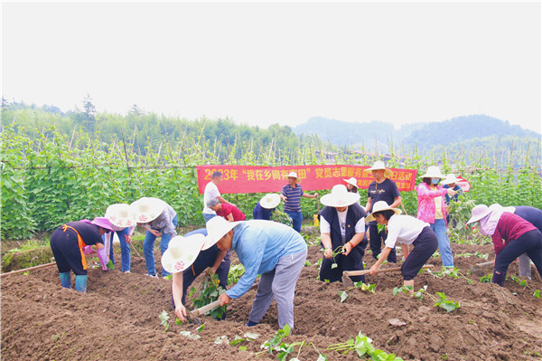 遠處,青山巍巍,云霧繚繞;近處,田間地頭里,黨員干部們正揮鋤刨土,挖穴插苗……簽約儀式結(jié)束后,黨員干部們來到認領(lǐng)田地開展農(nóng)事活動,在農(nóng)戶的指導(dǎo)下學(xué)習(xí)種薯技巧,整個勞作過程,大家熱情高漲、干勁十足。