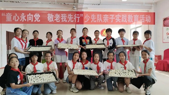 孩子們領(lǐng)著家長與青年志愿者一起到養(yǎng)老中心和老人們一同包餃子。在志愿者的指導(dǎo)下和家長、老人的幫助下,孩子們興致盎然地用勺子舀一勺肉餡放在餃子皮的中間,然后把餃子皮重疊,最后用手沿著邊慢慢地捏到一起。在溫馨的氣氛中,各組“成品”陸續(xù)呈現(xiàn),月牙餃子、荷包餃子、金元寶餃子,各種花樣層出不窮,大家充滿熱情,樂在其中。當(dāng)一盤盤熱氣騰騰的餃子端上餐桌,孩子們看著自己的勞動成果感到非常自豪,老人們的臉上也洋溢著開心和幸福的笑容。