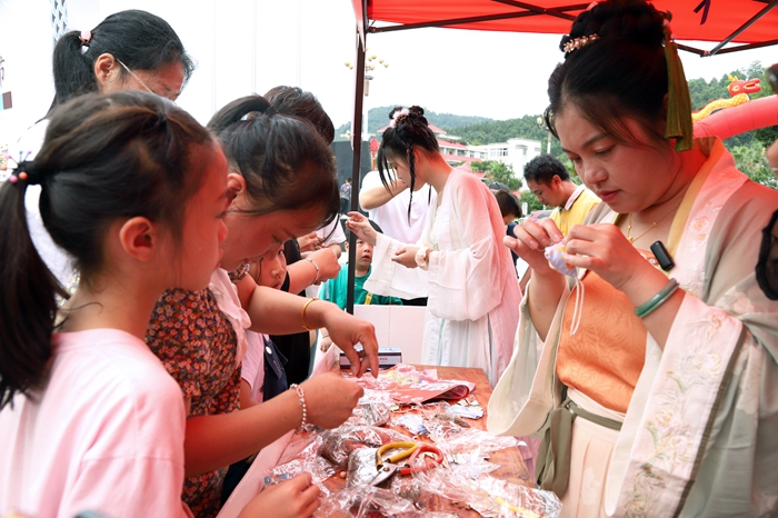 開幕式上,舞蹈歌曲精彩紛呈,更有沉浸式情景演繹,跨越時(shí)空與“屈子”互動(dòng)對(duì)話。活動(dòng)現(xiàn)場(chǎng)還設(shè)有投壺、制作祈福香囊、射五毒、包粽子比賽等互動(dòng)體驗(yàn)專區(qū),讓市民近距離體驗(yàn)感受傳統(tǒng)文化的魅力。不少游客還身著漢服,佩戴五彩繩,穿行在體驗(yàn)互動(dòng)的各個(gè)展區(qū),打卡拍照、互動(dòng)游玩,共同迎接端午佳節(jié)的到來。