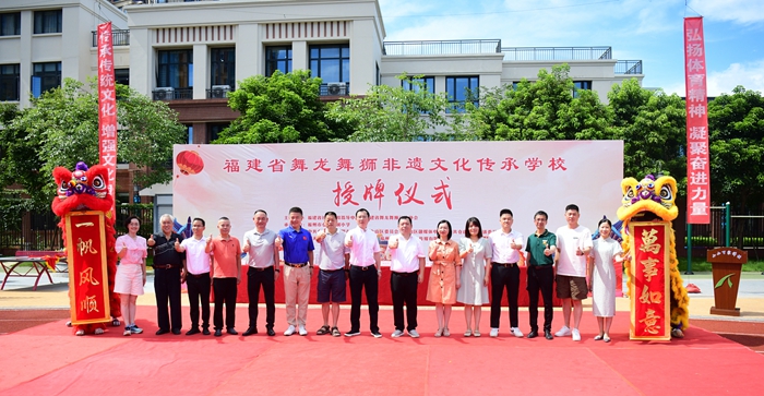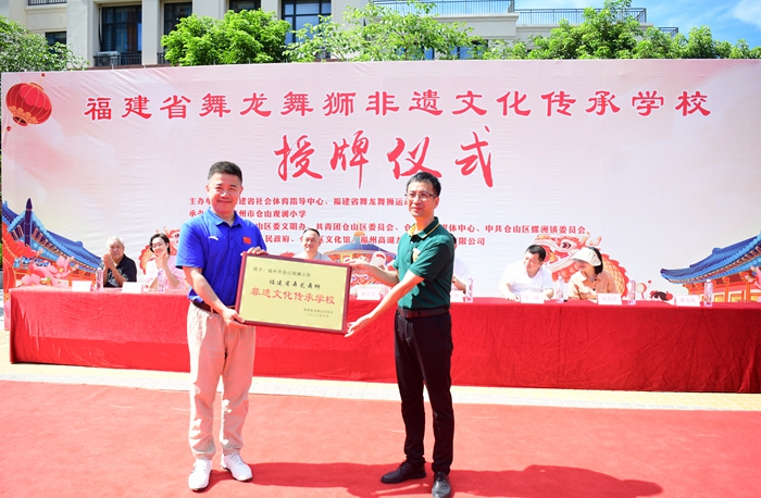 “福建省舞龍舞獅非遺文化傳承學?!笔谂苾x式(倉山區融媒體中心 供圖)