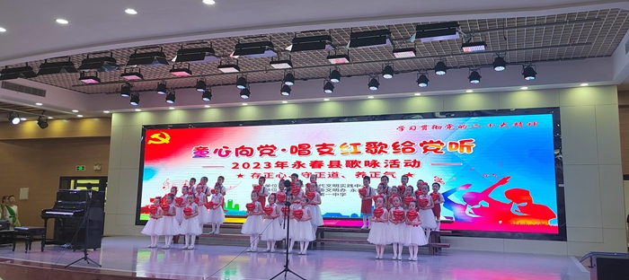 文明風6月30日訊 在七一建黨節到來之際,永春縣委文明辦、縣教育局聯合開展的2023年永春縣“童心向黨·唱支紅歌給黨聽”歌詠活動在永春一中成功舉行。