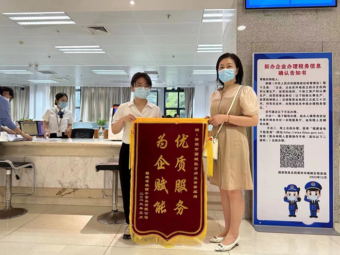 群眾為企業開辦窗口送來錦旗,感謝窗口優質熱情服務。林婧 供圖