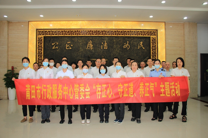為推動以學正風、以學促干,進一步轉作風、優服務,中心管委會在樹新風上下更大氣力,開展了“存正心、守正道、養正氣”新風正氣福建“名片”系列主題活動。5月15日以來,分別組織黨員干部、一線政務服務辦事員前往荔城區廉政警示教育基地、莆陽家規家訓館,開展廉政教育實踐活動,舉辦了廉潔書籍“漂流瓶”、“廉潔審批”微課堂、廉政書法進政務服務大廳等活動。通過這些活動,進一步增強廉政意識,規范審批程序,優化工作作風。
