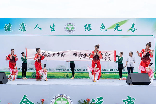 近日,連城縣開展“健康人生·綠色無毒”禁毒專場宣傳活動,縣委常委、政法委書記謝富國,副縣長、縣公安局局長盧廣明出席活動,縣禁毒委各成員單位、縣公安局民警、禁毒志愿者、干部群眾等500余人參加活動。
