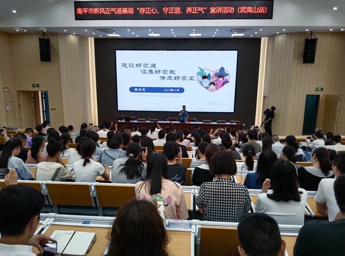文明風6月30日訊 6月30日, 南平市政協(xié)、南平市委文明辦、南平市婦聯(lián)在武夷山市第一中學多功能會議廳開展新風正氣進基層“存正心、守正道、養(yǎng)正氣”主題宣講活動。