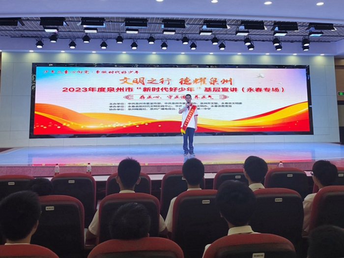 泉州市委宣傳部、泉州市委文明辦、泉州市文聯、永春縣文明委聯合在永春縣一中舉辦“2023年度泉州市‘新時代好少年’基層宣講(永春專場)”活動