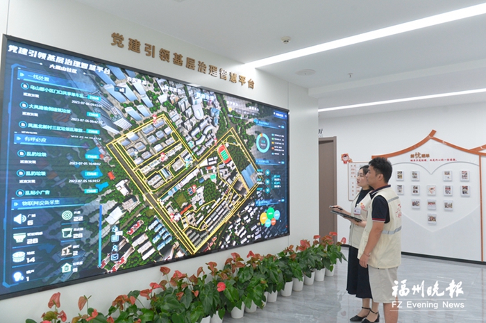 社區工作人員介紹“社區黨建引領基層治理智慧平臺”(福州晚報記者池遠攝)