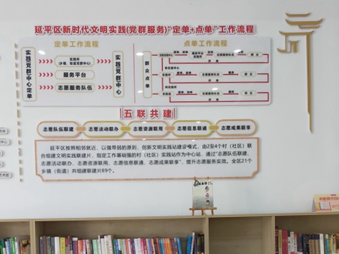 延平區新時代文明實踐中心,點單-定單操作流程圖上墻。魏小玲 攝