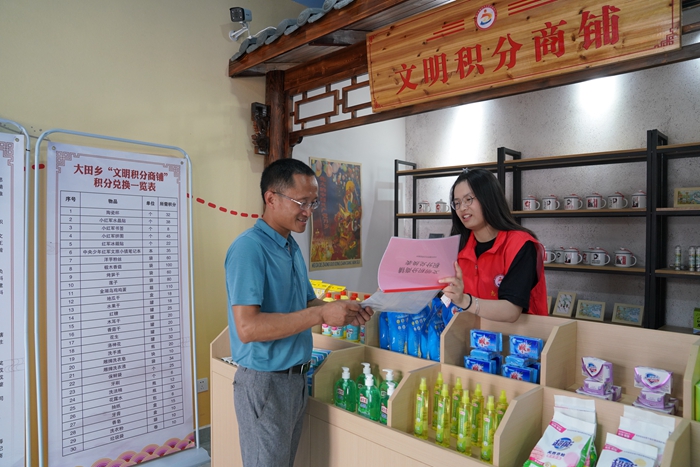 泰寧縣大田鄉充分發揮新時代文明實踐站作用,在全縣率先推行“文明積分”,結合鄉愁記憶館,打造文明積分商鋪,制定《大田鄉“文明積分商鋪”管理辦法(試行)》,將群眾參與理論政策宣傳、環境衛生整治、關愛孤寡老人、文化文藝活動、移風易俗等志愿服務活動轉化為相應的積分,而后群眾在每季度最后一個月的26日可集中到文明積分商鋪兌換相應積分的文創產品、農特產品或者生活用品等。截至目前,全鄉參與積分兌換達300余人次。設立文化墻、善行義舉榜、家風家訓宣傳欄,常態化開展“最美婆媳”“最美家庭”“道德模范”“最美庭院”等評選活動,并通過入戶走訪、村村響廣播、宣傳欄等形式,廣泛宣傳孝老愛親道德模范和文明家庭事跡,發揮先進典型的示范引領帶動作用,引導群眾樹立文明新風尚,培育文明鄉風、淳樸民風。(泰寧縣委文明辦 許興華 謝阿龍)