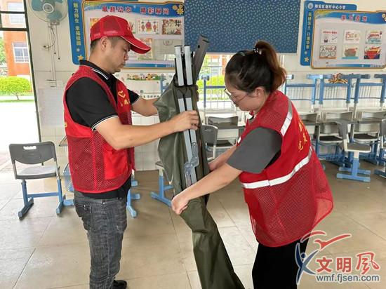 “大家在這好好休息,有事隨時找我”。聽到自己的父老鄉親需要支援,翔安區檢察院的沈水根也坐不住了,急忙趕到安置點,幫起了忙。“我是新圩桂林村人,還是一名黨員、退伍軍人,這種時候我當然義不容辭。”他的妻子洪小梅作為新圩鎮綜治辦的一名工作人員,也投入到了現場安置工作中。一直以來,他們夫妻倆都積極參與到志愿者的行列中來,看著村民群眾在大家的幫助下,安全返回了住所,他們還堅持留下來完成最后的整理收尾工作。