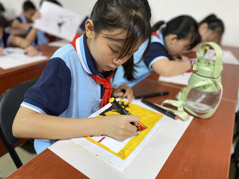 孩子們現場手工繪畫獻禮“八一”(倉山區城門鎮 供圖)
