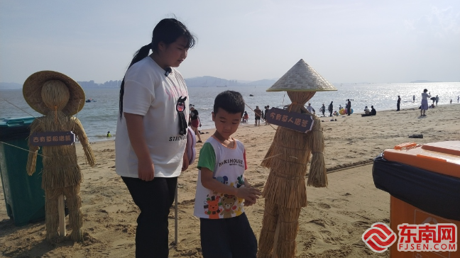 “草人借簽”成為回收沙灘燒烤竹簽的“環保能手”。思明區融媒體中心供圖