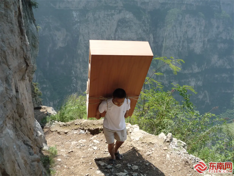 老馬校長(zhǎng)把書(shū)架背上了四川省雅安市的“懸崖小學(xué)”。福建省擔(dān)當(dāng)者行動(dòng)教育基金會(huì)供圖
