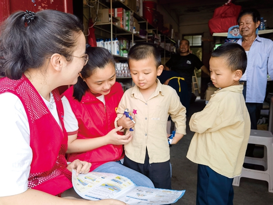 “小朋友,不能一個人去溪邊玩啊!遇到落水者我們應該這樣做……”桂陽鄉新時代文明實踐所的志愿者們以一問一答的形式向小朋友和家長宣傳普及防溺水知識。