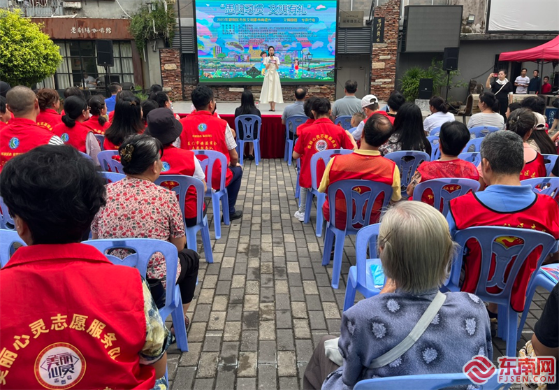8月11日下午,“思明習慣 文明有禮”2023年思明區市民文明素養再提升“文明晾曬”專項宣傳教育行動在廈門市思明區鷺江老劇場文化公園舉行。