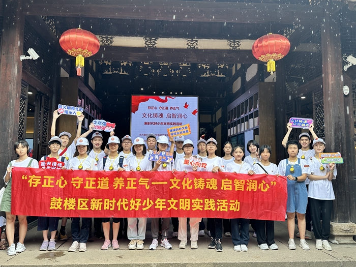 文明風(fēng)8月15日訊 為貫徹落實(shí)黨的二十大精神,廣泛踐行社會(huì)主義核心價(jià)值觀,加快構(gòu)建鼓樓區(qū)域“大思政”教育工作的組織育人體系,8月7日至8月11日,在鼓樓區(qū)新時(shí)代文明實(shí)踐中心的指導(dǎo)下,鼓樓區(qū)委宣傳部、文明辦等多家單位聯(lián)合開展為期5天的“存正心、守正道、養(yǎng)正氣——文化鑄魂 啟智潤心”新時(shí)代好少年文明實(shí)踐活動(dòng)。共計(jì)100名鼓樓區(qū)“新時(shí)代好少年”、優(yōu)秀學(xué)生干部參加活動(dòng)。