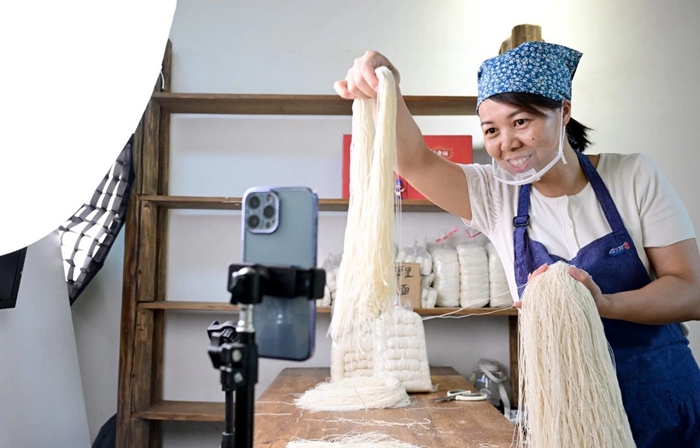 白天拍攝村內風光,晚上開展直播帶貨,姐妹倆為埔前帶來了一波又一波流量。經姐妹倆拋磚引玉,也吸引來了更多的直播團隊,紛紛與埔前線面聯名注冊產品品牌,將線面銷往全國各地。