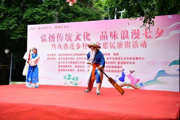文明風8月21日訊 為進一步弘揚中華優秀傳統文化,引導群眾了解、認同、喜愛、參與傳統節日,8月18日,延平區新時代文明實踐中心、延平區夏道鎮黨委、政府共同主辦“弘揚傳統文化,品味浪漫七夕”暨戲曲進鄉村文化惠民演出活動。
