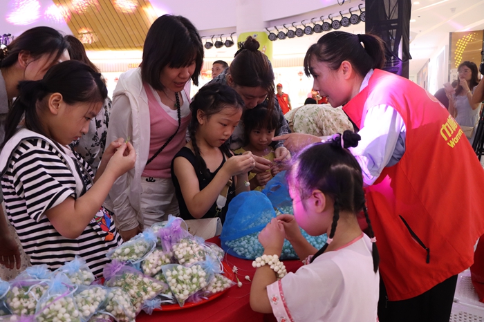 現(xiàn)場(chǎng)還設(shè)置有“分豆結(jié)緣”“穿針乞巧”“茉莉傳情”等七夕民俗體驗(yàn)項(xiàng)目,吸引了大批市民群眾參與其中,現(xiàn)場(chǎng)歡聲笑語不斷,大家沉浸在民俗體驗(yàn)中,近距離感受中華優(yōu)秀傳統(tǒng)文化的獨(dú)特魅力,在文化自信中汲取正能量。