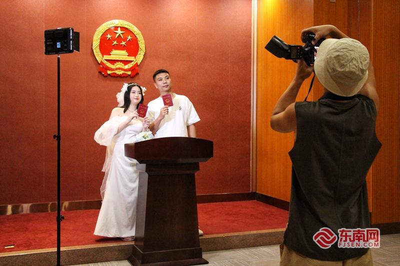 在豐澤區民政局婚姻登記處,為了有個美好的寓意,市民侯女士和莊先生特地選擇在七夕這天來登記。東南網記者 林婕 攝