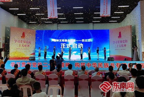在西北五鎮共建共融啟動儀式當天,上涌鎮聯合葛坑鎮、湯頭鄉、楊梅鄉和桂陽鄉在上涌鎮文體活動中心,開展2023年泉州市道德模范身邊好人基層宣講匯演活動暨“我們的節日·七夕”主題系列活動(德化專場),五鎮群眾代表齊聚一堂,現場很是熱鬧。