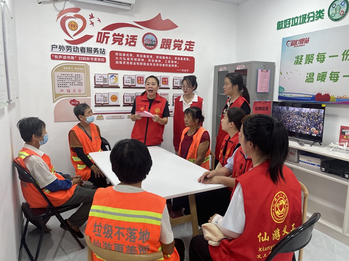 活動中,主辦方秉持“以學(xué)鑄魂、以學(xué)增智、以學(xué)正風(fēng)、以學(xué)促干”的理念,開展微課堂送法律,組織戶外勞動者、周邊群眾觀看安全知識、法律知識,強化戶外勞動者安全生產(chǎn)、依法行事的意識,傳播社會正能量。同時,仙游義工協(xié)會醫(yī)療志愿者現(xiàn)場為戶外勞動者提供測量血壓、體溫服務(wù),并普及“兩癌”健康篩查等知識,幫助戶外勞動者、周邊群眾了解自身健康,重視身體保養(yǎng),為身體和精神減壓。