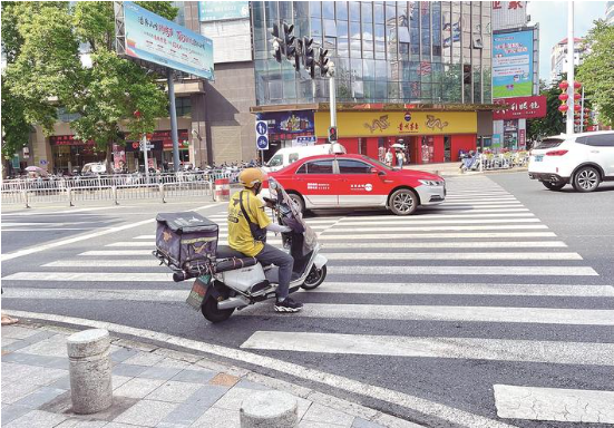 “邊騎車邊看手機,速度還非常快,在斑馬線和機動車道上橫闖,真的非常危險。”市民蔣先生說。記者看到,三元區江濱路輔路與和仁路交叉口路口處是送餐員頻繁出沒的地方,但他們在斑馬線前幾乎不會禮讓行人,而送餐員通過斑馬線時,小轎車司機幾乎沒有停車讓行,只有個別司機會減速讓行。