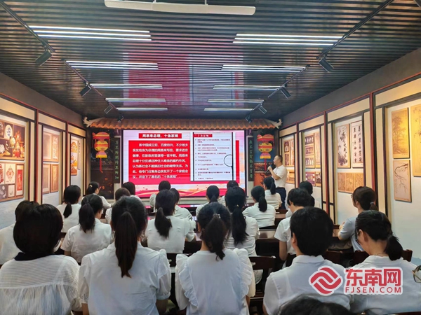 “本月活動(dòng)由我校承辦,我們結(jié)合‘存正心、守正道、養(yǎng)正氣’這一主題開展廉潔文化主題黨日活動(dòng)。恰逢教師節(jié)期間,希望參與活動(dòng)的黨員教師通過今天的學(xué)習(xí)能進(jìn)一步增強(qiáng)廉潔從教意識(shí),發(fā)揮黨員帶頭作用,與全體教師過一個(gè)清新、廉潔、綠色的教師節(jié)。”鯉城區(qū)實(shí)驗(yàn)小學(xué)黨支部書記、校長蔡小青介紹道。