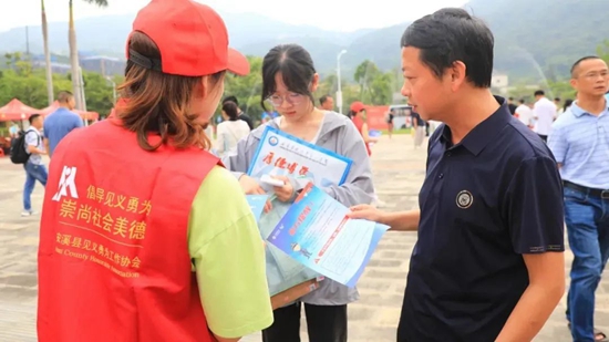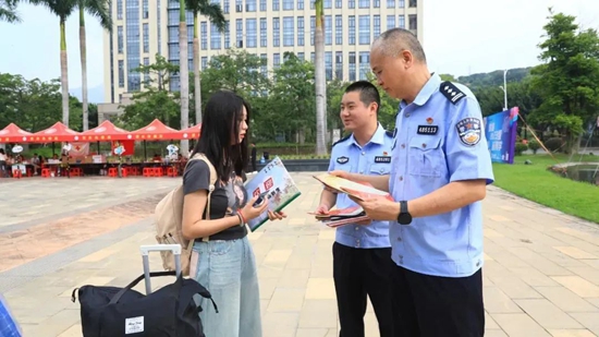 活動現場,工作人員通過發放宣傳單、擺放宣傳展板等形式,向現場老師、學生及家長宣傳反詐防騙和見義勇為知識,宣傳見義勇為英雄事跡,普及見義勇為表彰、獎勵、保障等方面的法律知識和政策規定。