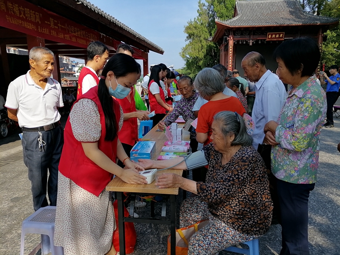 活動現場,紅土地上客家人文明實踐志愿服務隊在現場設置展臺、展板,志愿者們通過掛圖及展板闡釋解說垃圾分類及文明旅游等知識、發放《三明市公共文明行為促進條例》《寧化縣文明市民手冊》《三明市城市市容環境衛生管理條例》《交通安全》等宣傳冊和倡議書、現場咨詢服務等方式,為群眾提供公民思想道德規范、義診、醫療保健、法律科普、防詐防騙宣傳、公共文明行為引導等志愿服務,倡導群眾勤儉節約、誠實守信、講衛生講文明、講禮儀講公德,引導群眾文明出行、文明旅游、文明用餐,樹立文明健康綠色環保的生活理念,爭做明大德、守公德、嚴私德的好公民。志愿者們還充分利用公民道德宣傳日這一契機,結合文明創建開展文明勸導志愿服務活動,對周邊群眾車輛亂停亂放、隨地吐痰、公共場所吸煙等不文明行為進行勸導,進一步倡導文明新風,弘揚社會正氣。